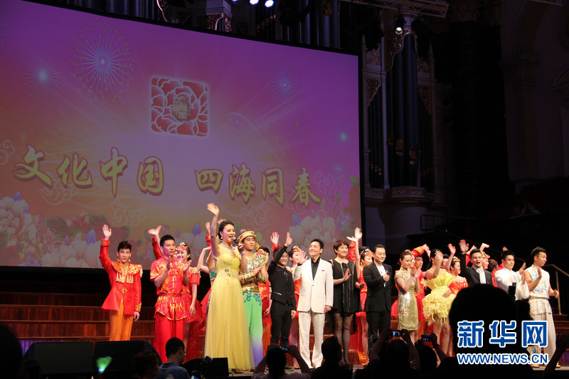 ???????? 2月25日,由中國國務(wù)院僑辦和中國海外交流協(xié)會聯(lián)合主辦的“文化中國·四海同春”在悉尼舉辦大洋洲團(tuán)的首場演出,歌手成方圓、中國好聲音學(xué)員李維、周深等國內(nèi)知名表演者和中澳藝術(shù)團(tuán)體為當(dāng)?shù)厝A僑華人送來新春祝福。圖為當(dāng)晚所有演員合影謝幕。新華社記者趙小娜攝