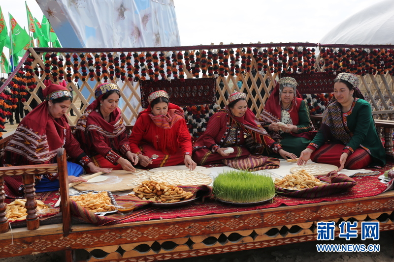????以往過著游牧和半游牧生活的人們在冰雪消融、牲畜產(chǎn)仔的時節(jié),都會以這一傳統(tǒng)佳節(jié)歡慶新生活。 21日上午,在阿什哈巴德以東40來公里處專門為節(jié)日搭建的場地上,土庫曼斯坦內(nèi)閣、外交使節(jié)、民眾和學生參加了隆重的慶?;顒??;顒又?,青年男女、學齡前兒童載歌載舞,民眾和藝術(shù)家展示傳統(tǒng)的編織和手工藝術(shù),青年男女高高地蕩起秋千,汗血寶馬進行馬技表演,土庫曼咬狼犬、羊群和駱駝或圍在欄子里,或被主人牽在手中,展現(xiàn)出游牧民族的生活景象。