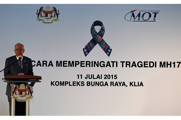 ↑2015年7月11日,馬來西亞總理納吉布在馬航MH17失事1周年紀念儀式上講話。