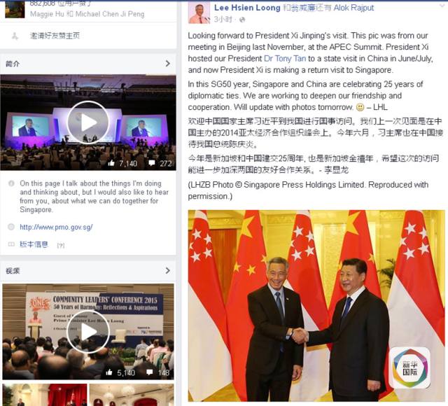 新華網(wǎng)北京11月6日電 國家主席習(xí)近平到訪新加坡的幾個小時前,新加坡總理李顯龍在自己的臉書主頁上表示,歡迎習(xí)主席到新加坡進(jìn)行國事訪問。