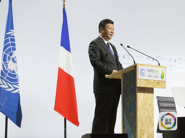 習(xí)近平在巴黎出席氣候變化巴黎大會開幕式并發(fā)表題為《攜手構(gòu)建合作共贏、公平合理的氣候變化治理機(jī)制》的重要講話。