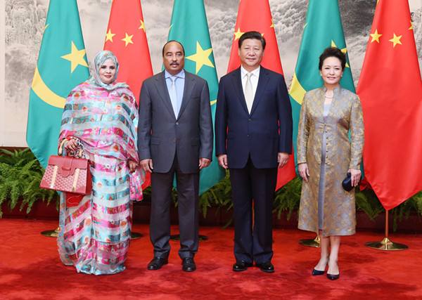 2015年9月14日,習近平舉行儀式歡迎毛里塔尼亞總統(tǒng)阿齊茲訪華。這是習近平主席和夫人彭麗媛在人民大會堂同阿齊茲總統(tǒng)夫婦合影。(新華社記者姚大偉攝)