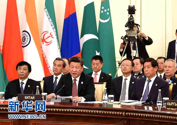 習近平指出,上海合作組織成立15年來,取得了令人矚目的發(fā)展成就。開創(chuàng)性倡導和踐行互信、互利、平等、協(xié)商、尊重多樣文明、謀求共同發(fā)展的“上海精神”。相互堅定支持自主選擇的發(fā)展道路和維護核心利益的努力,全面推進經(jīng)貿(mào)、金融、能源、交通等各領域合作深入發(fā)展,擴大民間交往和人文交流,努力拓展對外交往,朋友圈日益擴大,啟動首次擴員進程,國際影響力進一步提升。