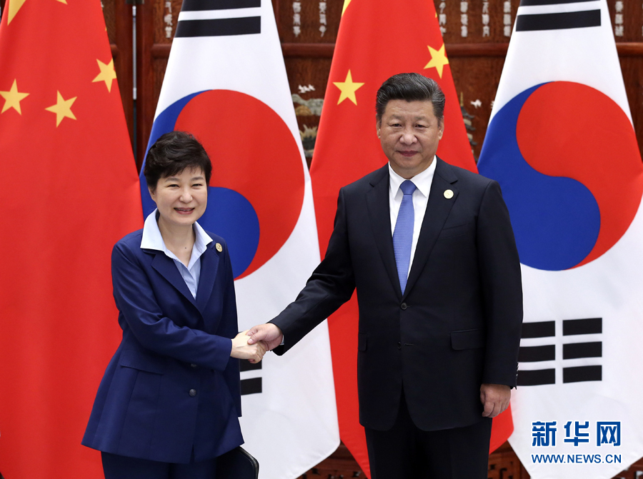 9月5日,國家主席習(xí)近平在杭州會見來華出席二十國集團領(lǐng)導(dǎo)人峰會的韓國總統(tǒng)樸槿惠。 新華社記者龐興雷攝