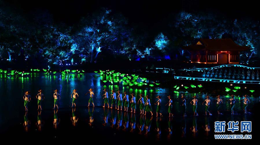 9月4日,演員在表演《采茶舞曲》。當(dāng)日,出席二十國集團(tuán)領(lǐng)導(dǎo)人杭州峰會的G20成員和嘉賓國領(lǐng)導(dǎo)人及有關(guān)國際組織負(fù)責(zé)人在杭州西湖景區(qū)觀看《最憶是杭州》實景演出交響音樂會。新華社記者 張鐸 攝