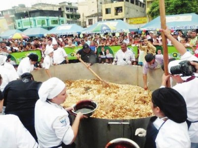 克韋多市作為“炒冷飯”的故鄉(xiāng),為了推廣國內(nèi)和國際旅游,在2013年還曾做過一個世界最大的“炒冷飯”。當時使用的鍋直徑4米,深1.5米,使用的食材有500公斤大米、1000個雞蛋、50升油、三大桶醬油,還有上百公斤的雞肉、蝦仁等,40多名廚師學校的學生一起參與了制作。現(xiàn)場數(shù)千民眾隨后一起享用了這個巨無霸“炒冷飯”。