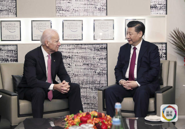 1月17日,國(guó)家主席習(xí)近平在瑞士達(dá)沃斯會(huì)見(jiàn)美國(guó)副總統(tǒng)拜登。(新華社記者 蘭紅光 攝)