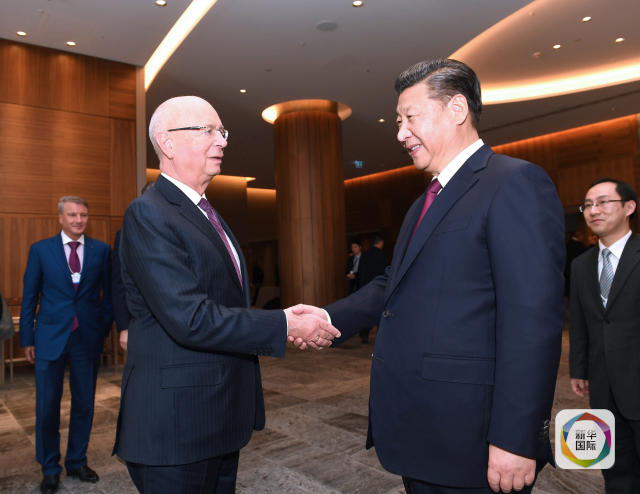 1月17日,國(guó)家主席習(xí)近平在瑞士達(dá)沃斯會(huì)見(jiàn)世界經(jīng)濟(jì)論壇主席施瓦布。(新華社記者 饒愛(ài)民 攝)