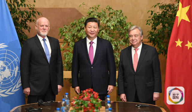 離開世界衛(wèi)生組織總部,習主席來到萬國宮瑞士廳,同第71屆聯(lián)大主席湯姆森和聯(lián)合國秘書長古特雷斯舉行會見。這也是古特雷斯今年1月正式履新聯(lián)合國“掌門人”后,習主席和他的第一次會面。