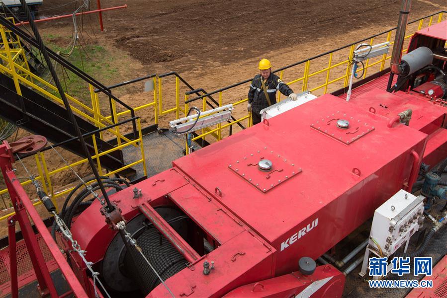 6月2日,在俄羅斯伊熱夫斯克,工人在UDM項目鉆井現(xiàn)場作業(yè)。新華社記者白雪騏攝