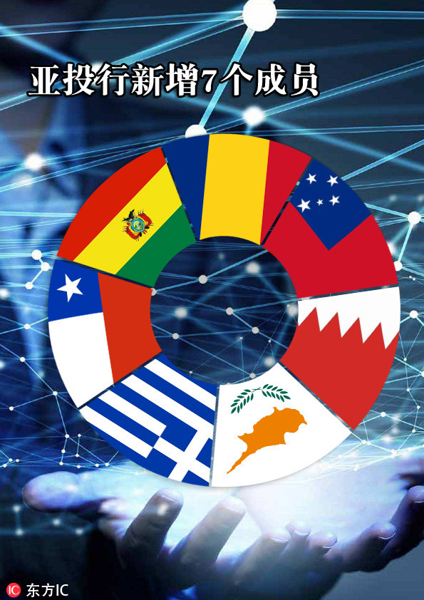 【二度“擴圍”】2017年5月13日,亞投行批準新一批7個意向成員加入,成員總數(shù)擴大到77個。此次新增的7個成員包括巴林、塞浦路斯、薩摩亞3個域內(nèi)成員和玻利維亞、智利、希臘、羅馬尼亞4個非域內(nèi)成員。