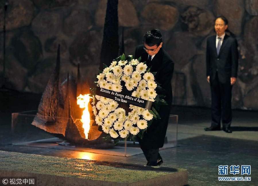 12月25日,耶路撒冷,日本外相河野太郎訪問(wèn)耶路撒冷,參觀大屠殺紀(jì)念館,獻(xiàn)花悼念死難者。 (圖片來(lái)源:視覺(jué)中國(guó))