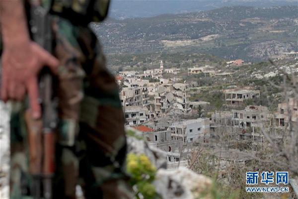 3月19日,在敘利亞拉塔基亞省北郊薩勒瑪鎮(zhèn),一名敘利亞軍士兵在一處高地戒備。