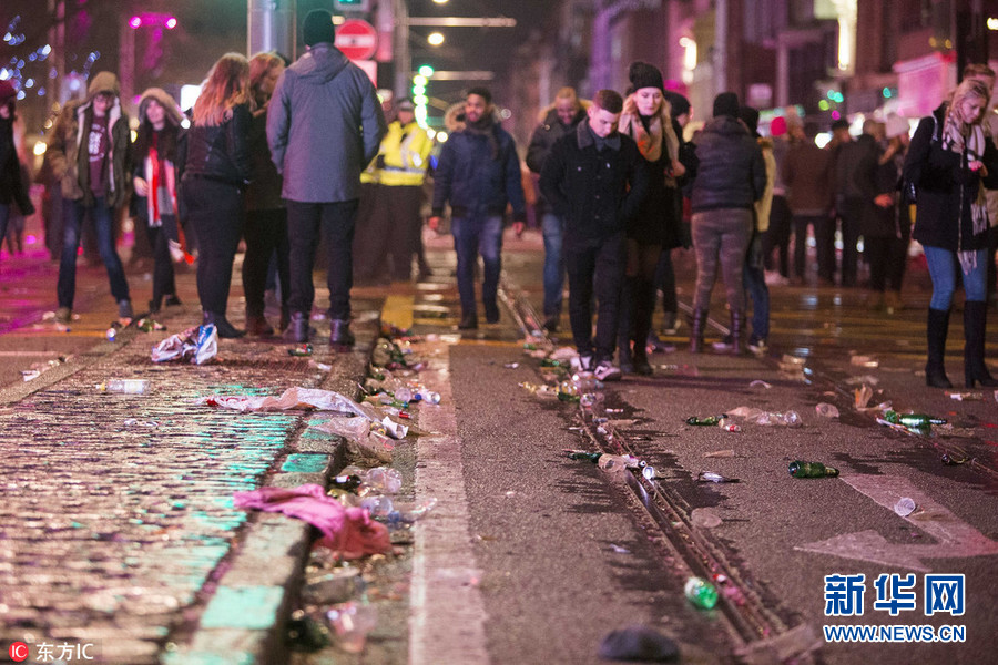 2018年1月1日,英國愛丁堡,跨年狂歡過后,遍地垃圾。(圖片來源:東方IC)