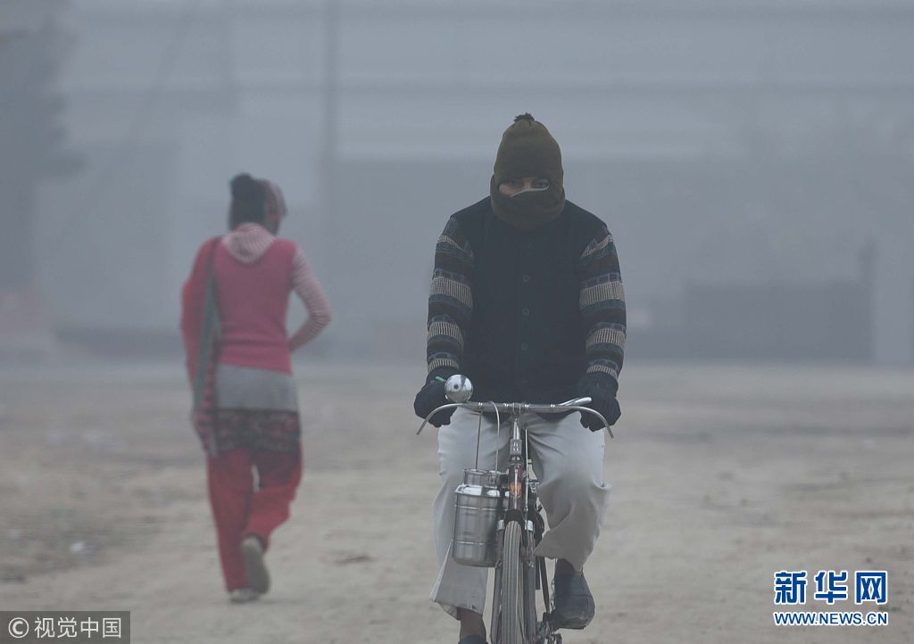 當(dāng)?shù)貢r(shí)間1月2日,印度新德里遭遇冷空氣及強(qiáng)霧霾天氣,能見度低。(圖片來源:視覺中國)