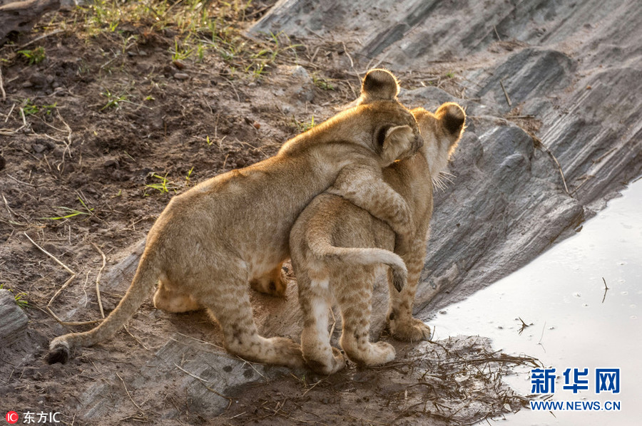 1月2日?qǐng)?bào)道(具體拍攝時(shí)間不詳),肯尼亞馬賽馬拉國家保護(hù)區(qū),64歲的攝影師Ingo Gelach在當(dāng)?shù)嘏臄z到一組有趣又暖心的照片。畫面中,兩頭小獅子站在水邊,似乎正考慮跨越面前的水域。其中一頭獅子用前腳搭在同伴的肩膀上,似乎在表達(dá)友好,又似是在鼓勵(lì)同伴不要害怕,勇敢地跨過去。(圖片來源:東方IC)