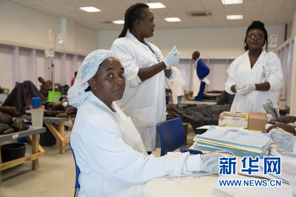 1月9日,一名醫(yī)護人員在位于國家英雄體育場的霍亂治療中心男性病房內工作。新華網發(fā) (彭立軍攝)
