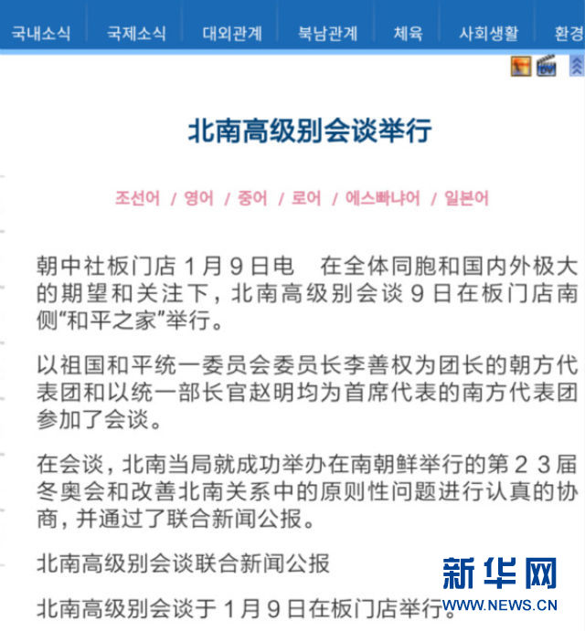 文章前一部分是對會談情況的簡單介紹,后一部分直接發(fā)布了朝韓高級別會談聯(lián)合新聞公報的內(nèi)容。