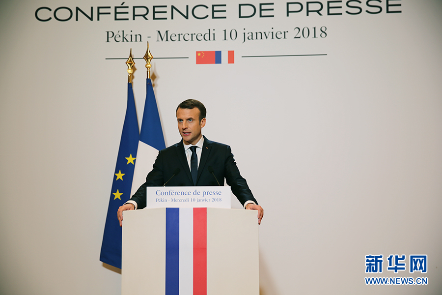 1月10日,法國總統(tǒng)馬克龍在北京舉行的新聞發(fā)布會上回答記者提問。新華網(wǎng) 吳傲雪 攝
