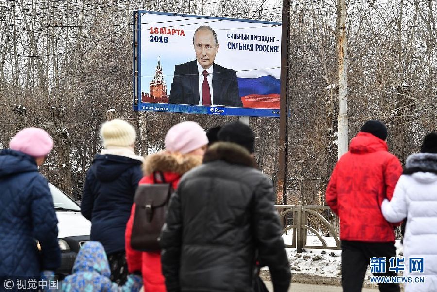 當?shù)貢r間2018年1月15日,俄羅斯葉卡捷琳堡,2018俄羅斯總統(tǒng)大選拉開帷幕,巨大普京海報矗立街頭。(圖片來源:視覺中國)