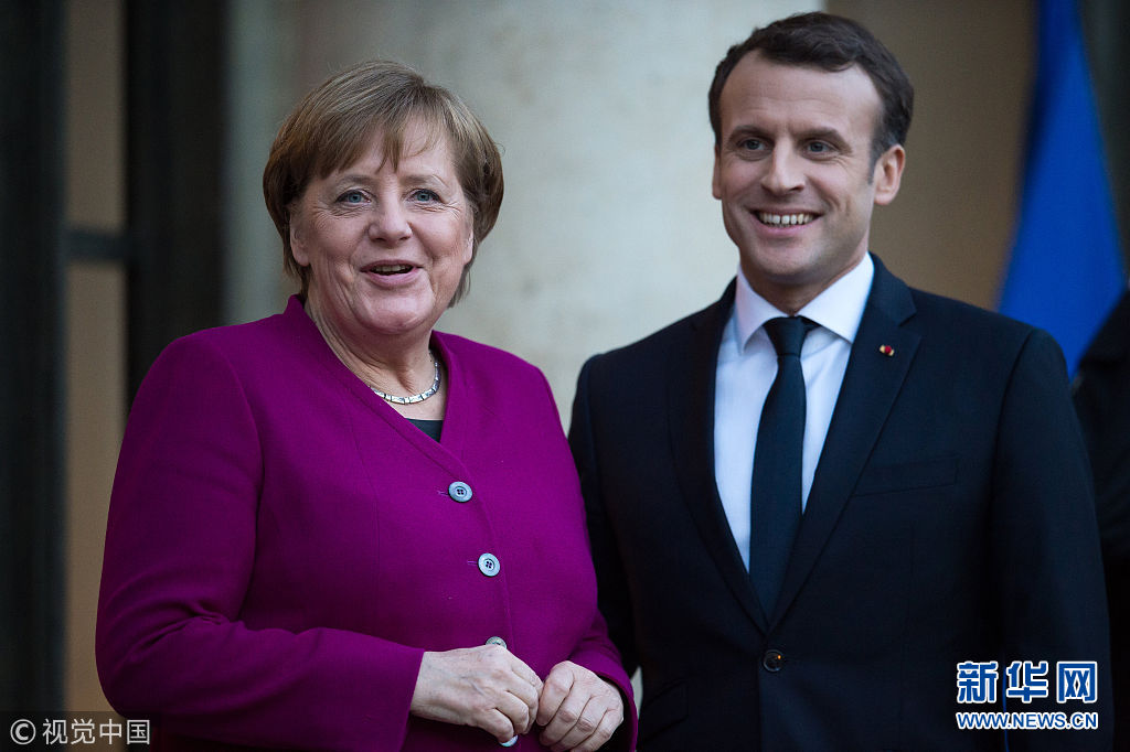 當?shù)貢r間2018年1月19日,法國巴黎,法國總統(tǒng)馬克龍在愛麗舍宮會晤到訪的德國總理默克爾,表示在推動歐洲改革的進程中,法國需要德國。馬克龍以此對面臨大選后組閣危機的默克爾表達支持。馬克龍在會后強調了法德合作的重要性。他表示,法國無法單獨實現(xiàn)自身的抱負,需要與德國的抱負結合起來。