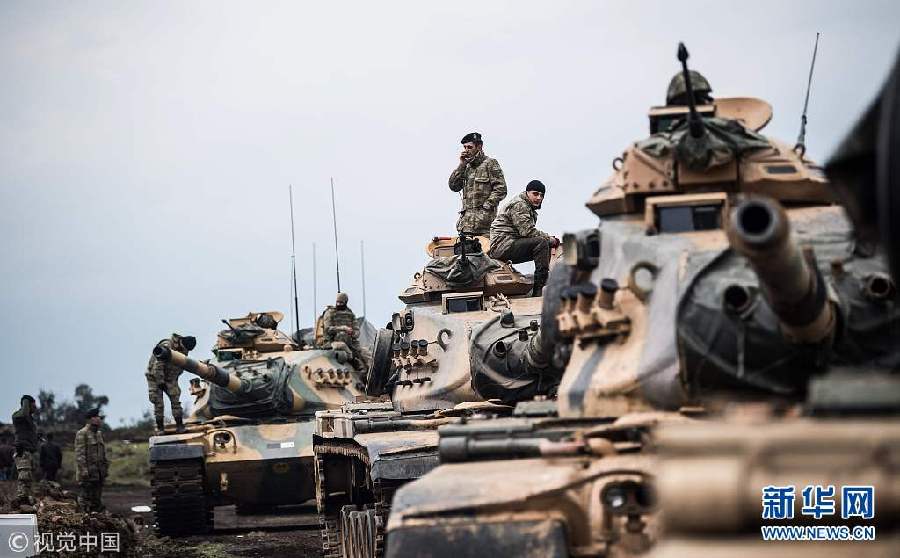 當(dāng)?shù)貢r(shí)間1月21日,土耳其哈塔伊省,土耳其部隊(duì)在土敘邊境哈薩鎮(zhèn)附近。(圖片來(lái)源:視覺(jué)中國(guó))