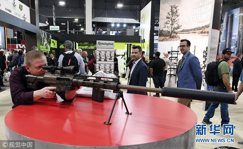 當(dāng)?shù)貢r間2018年1月23日,美國拉斯維加斯,美國全國射擊運動基金會(NSSF)舉辦槍支展銷會。(圖片來源:視覺中國)
