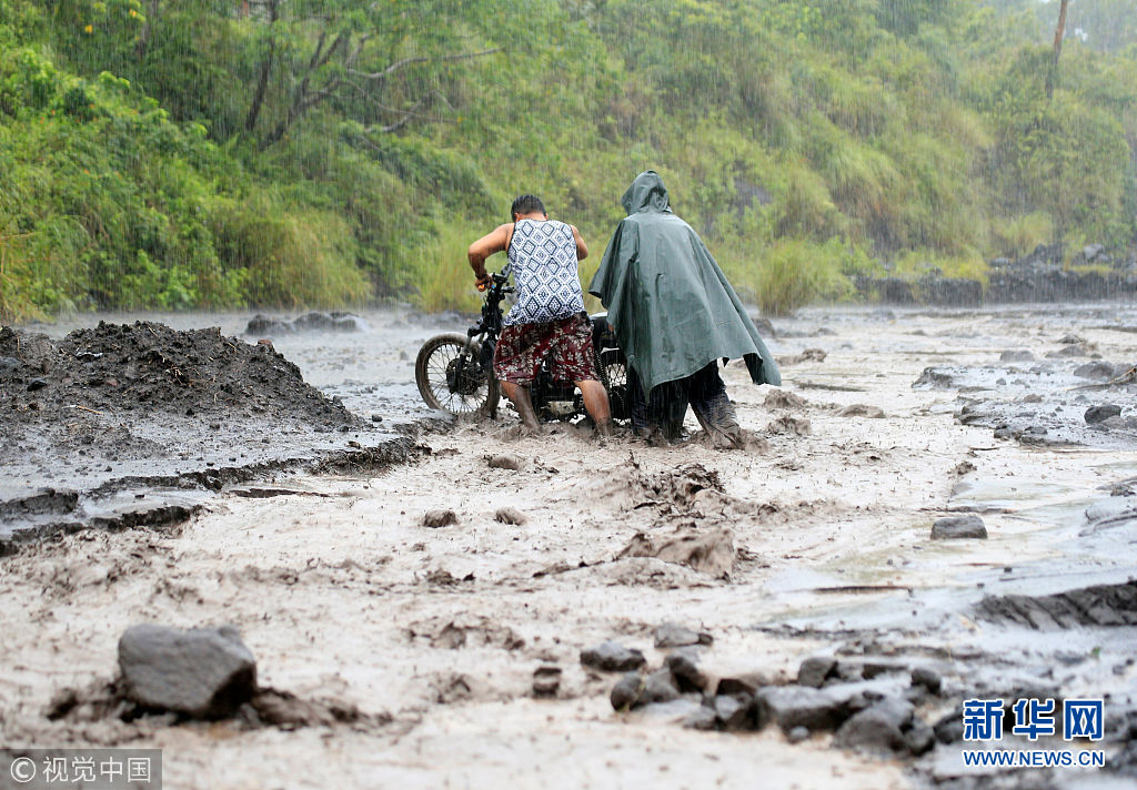 菲律賓馬榮火山持續(xù)噴發(fā) 火山灰落入河中變泥漿