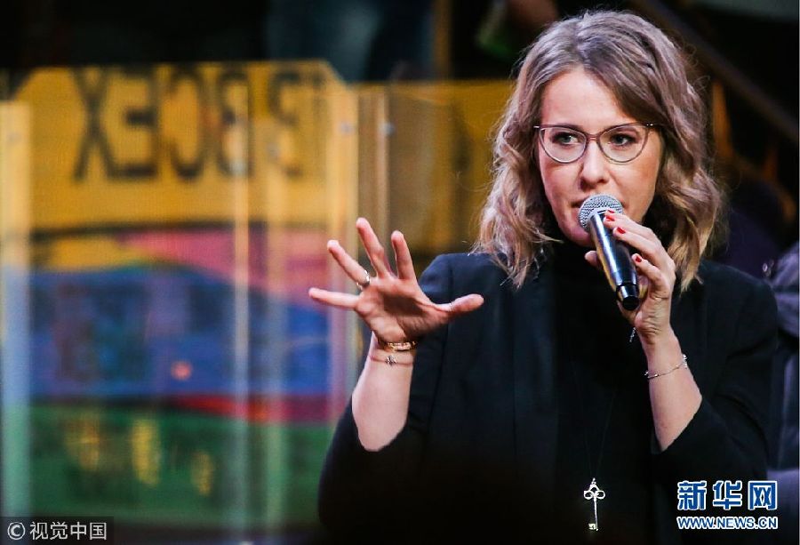 當?shù)貢r間2月3日,俄羅斯圣彼得堡,俄羅斯電視節(jié)目主持人、總統(tǒng)候選人克謝尼婭·索布恰克會見支持者。(圖片來源:視覺中國)