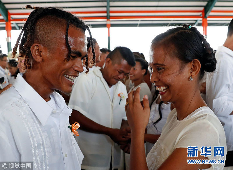 2月13日,菲律賓蘇比克,情人節(jié)前夕,當(dāng)?shù)嘏e辦集體婚禮。(圖片來源:視覺中國)
