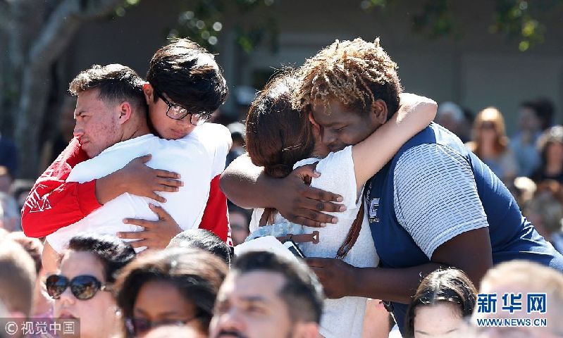當(dāng)?shù)貢r間2018年2月15日,美國佛羅里達(dá)州科勒爾斯普林斯,民眾悼念槍擊案遇難者。當(dāng)?shù)貢r間14日下午2點25分左右,美國佛羅里達(dá)州南部帕克蘭一所高中發(fā)生槍擊案,目前已致至少17人死亡,多人受傷。(圖片來源:視覺中國)