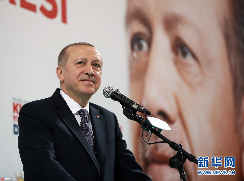 當(dāng)?shù)貢r(shí)間2018年2月17日,土耳其埃斯基謝希爾,土耳其總統(tǒng)埃爾多安出席正義與發(fā)展黨集會(huì),手持橄欖枝發(fā)表講話。(圖片來(lái)源:東方IC)