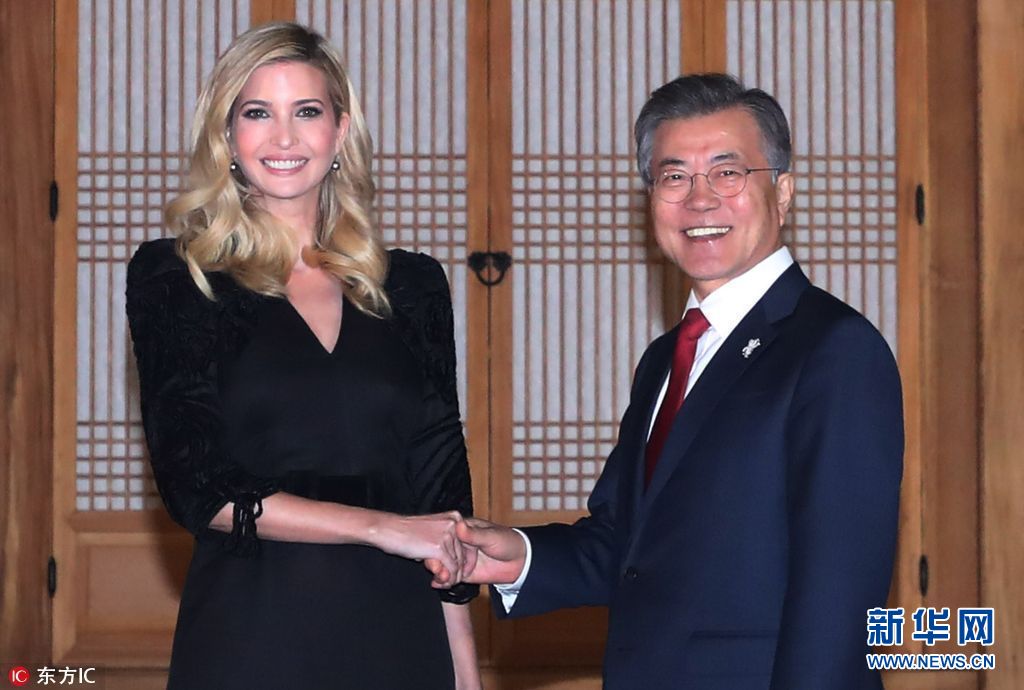 當(dāng)?shù)貢r(shí)間2018年2月23日,韓國(guó)首爾,韓國(guó)總統(tǒng)文在寅夫婦在青瓦臺(tái)設(shè)晚宴,歡迎伊萬(wàn)卡來訪。美國(guó)總統(tǒng)特朗普之女、總統(tǒng)助理伊萬(wàn)卡率領(lǐng)的美國(guó)代表團(tuán)23日抵韓進(jìn)行訪問,并將出席平昌冬奧會(huì)閉幕式。(圖片來源:東方IC)
