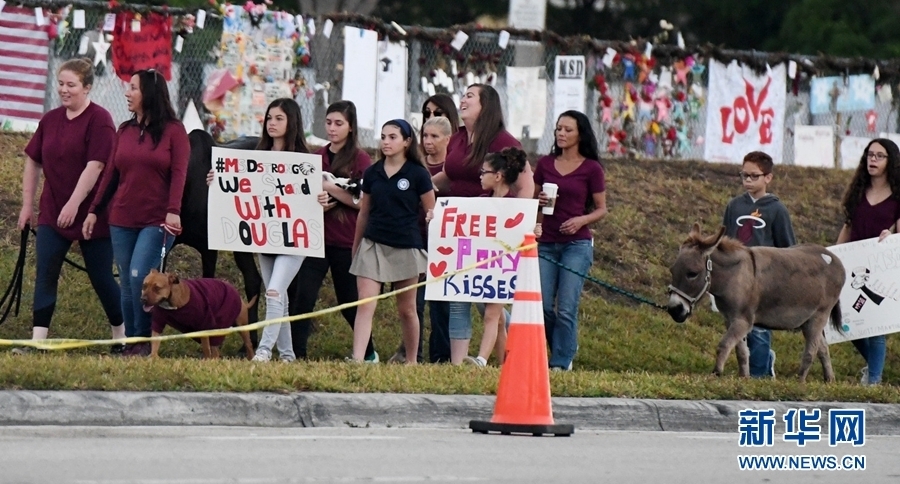 當(dāng)?shù)貢r間2月28日,美國佛羅里達(dá)州帕克蘭,發(fā)生槍擊案的道格拉斯中學(xué)復(fù)課,學(xué)生和教職工重返校園,大批警察出動維護(hù)治安。2月14日,一名19歲的槍手在學(xué)校里開槍,造成17人死亡。(圖片來源:視覺中國)