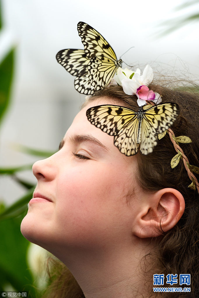 3月28日,英國倫敦自然歷史博物館舉辦奇異蝴蝶展,各式美麗新奇的蝴蝶翩翩飛舞,吸引了前來參觀的兒童與之親密接觸。(圖片來源:視覺中國)