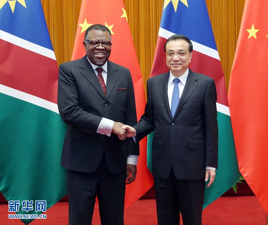 李克強(qiáng)表示,納米比亞是中國在非洲的重要合作伙伴。昨天,習(xí)近平主席同你舉行了富有成果的會談,將兩國關(guān)系提升為全面戰(zhàn)略合作伙伴關(guān)系。中方愿同納方鞏固政治互信,深化互利合作,加強(qiáng)在國際地區(qū)事務(wù)中的溝通協(xié)調(diào),開辟兩國關(guān)系更加美好的未來。