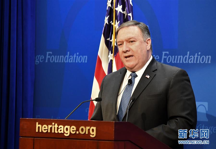 5月21日,美國國務卿蓬佩奧在華盛頓的美國智庫傳統(tǒng)基金會發(fā)表演講。美國國務卿蓬佩奧當日表示,伊朗如果不改變當前路線,將受到美國“最嚴厲的制裁”。 新華社記者楊承霖攝