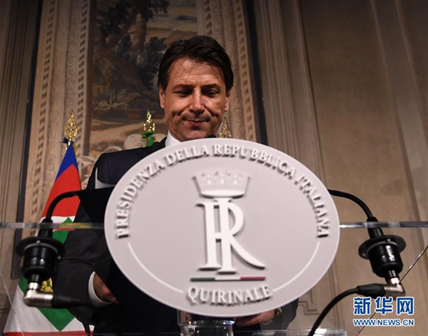 5月27日,在意大利首都羅馬,意新任總理孔特發(fā)表講話。據(jù)當(dāng)?shù)孛襟w報(bào)道,孔特27日晚間與總統(tǒng)馬塔雷拉會(huì)面并提交擬定的內(nèi)閣成員名單時(shí),馬塔雷拉否決了由意大利聯(lián)盟黨和五星運(yùn)動(dòng)力推的持疑歐立場的經(jīng)濟(jì)學(xué)家保羅·薩沃納出任財(cái)政部長??滋叵蚩偨y(tǒng)提出放棄組閣任務(wù)請(qǐng)求,請(qǐng)求得到總統(tǒng)確認(rèn)。新華社發(fā)(阿爾貝托·林格里亞攝)