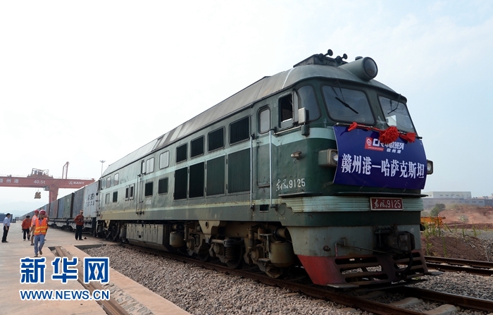 為世界和平發(fā)展注入強勁正能量——記中國擔任上海合作組織輪值主席國一年間在江西省贛州市南康區(qū)贛州港,“贛州港至哈薩克斯坦”中歐班列等待發(fā)車(2017年7月27日攝)。新華社記者 彭昭之 攝