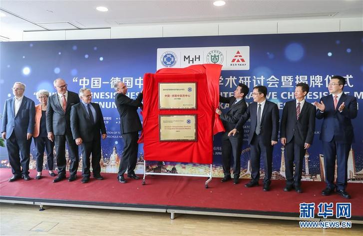 6月8日,在德國漢諾威,嘉賓為中國—德國中醫(yī)藥中心揭牌。新華社記者單宇琦 攝