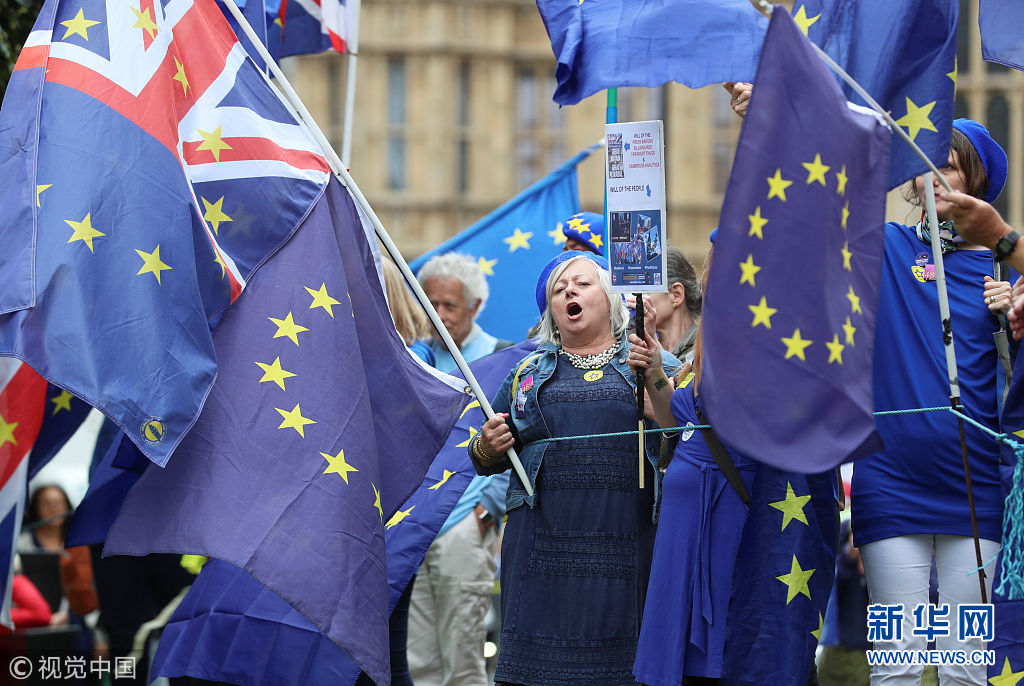 6月12日,英國倫敦,英國下議院將對《退出歐盟法案》進行投票,反對脫歐的民眾集會抗議。(圖片來源:視覺中國)