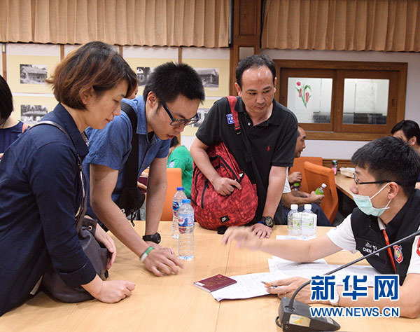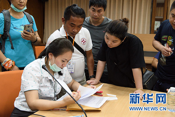 7月9日,在泰國(guó)普吉島的哇集拉醫(yī)院,來(lái)自普吉國(guó)際醫(yī)院的志愿者(前左)在幫助遇難者家屬做確認(rèn)遺體登記工作。新華社記者 秦晴 攝