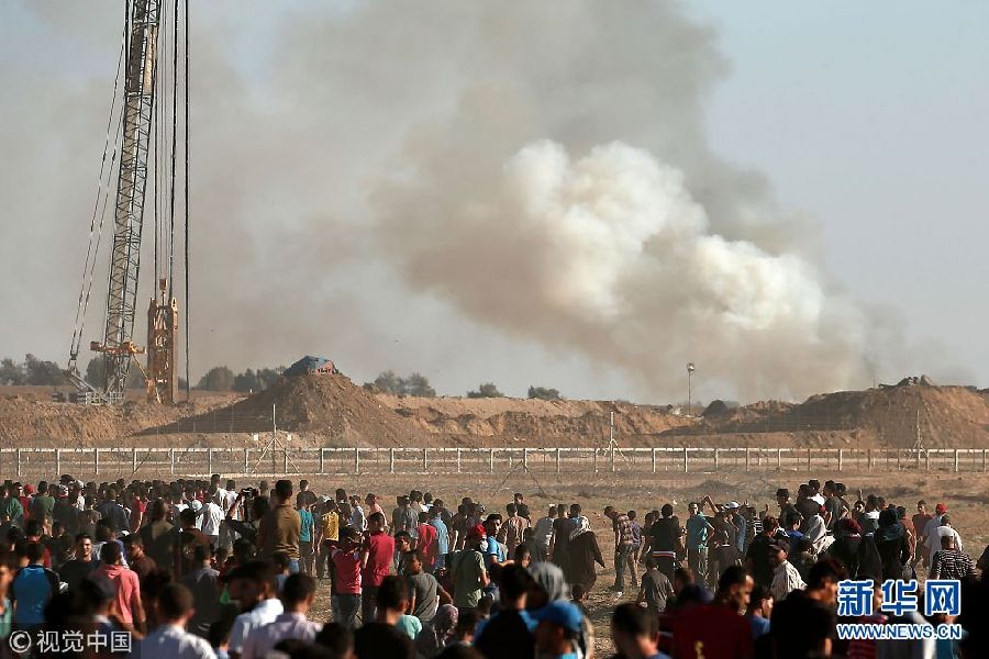 當?shù)貢r間2018年7月27日,加沙,巴勒斯坦民眾在加沙和以色列邊境舉行大規(guī)模的示威活動。(圖片來源:視覺中國)