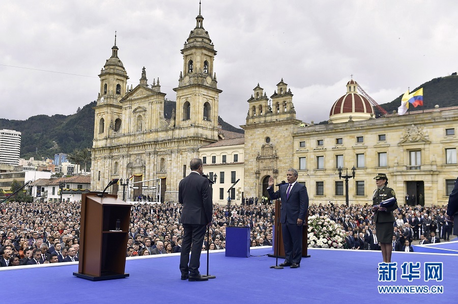 新華社波哥大8月7日電(記者何珊)哥倫比亞新任總統(tǒng)杜克7日在首都波哥大市中心玻利瓦爾廣場(chǎng)宣誓就職,正式開始為期四年的總統(tǒng)任期。