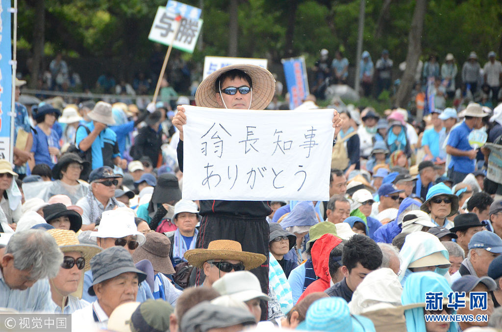 當?shù)貢r間2018年8月11日,日本沖繩縣約7萬民眾8月11日在那霸市舉行大規(guī)模集會,反對駐日美軍將普天間基地遷往名護市邊野古地區(qū),要求駐日美軍放棄在邊野古地區(qū)新建基地并立即關閉普天間機場。當天,日本東京都、大阪府、福岡、北海道縣等地民眾也同時舉行集會和游行,抗議日本政府推進邊野古地區(qū)填海施工。(圖片來源:視覺中國)