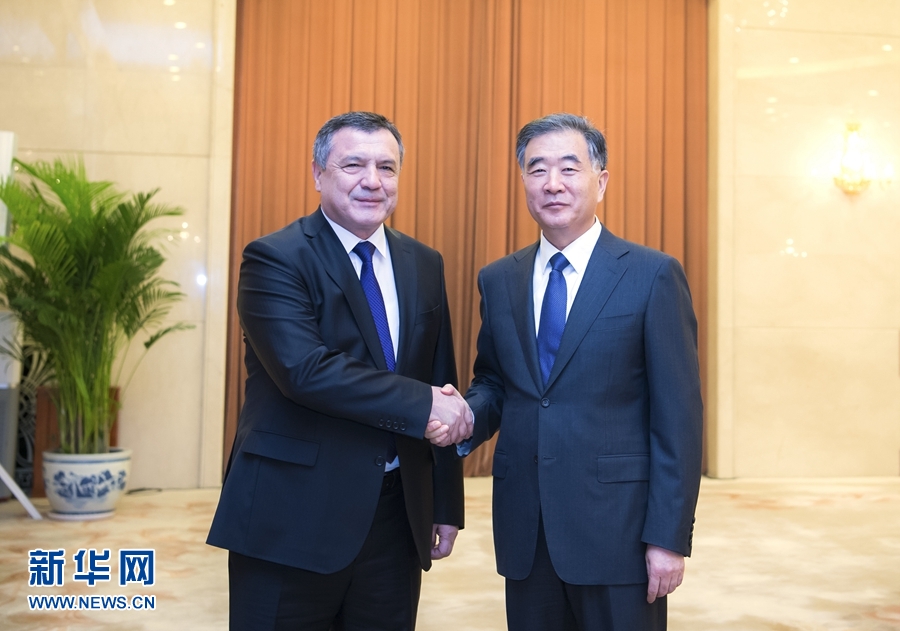 9月18日,全國政協(xié)主席汪洋在北京會見烏茲別克斯坦最高會議立法院主席伊斯梅洛夫。 新華社記者 翟健嵐 攝