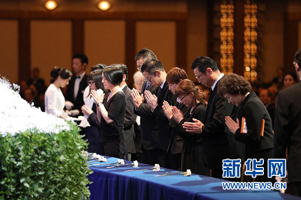 9月18日,在日本東京,人們參加淺利慶太告別儀式。新華社記者 杜瀟逸 攝