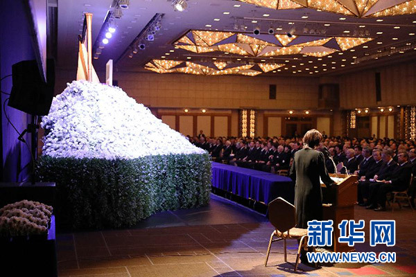 這是9月18日在日本東京拍攝的淺利慶太告別儀式現(xiàn)場。新華社記者 杜瀟逸 攝