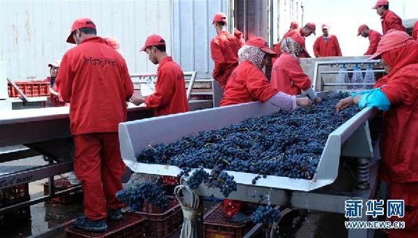10月1日,在摩洛哥小鎮(zhèn)魯馬尼,紅農(nóng)場(chǎng)酒莊的工作人員對(duì)收獲的葡萄進(jìn)行清洗加工。 據(jù)紅農(nóng)場(chǎng)總經(jīng)理馬蒙·薩耶介紹,該酒莊正在擴(kuò)大產(chǎn)能,希望通過參加首屆中國國際進(jìn)口博覽會(huì),將摩洛哥葡萄酒引進(jìn)中國市場(chǎng)。首屆中國國際進(jìn)口博覽會(huì)將于11月5日至10日在上海舉行。目前已有130多個(gè)國家和地區(qū)的2800多家企業(yè)確認(rèn)參展。 新華社記者陳斌杰攝