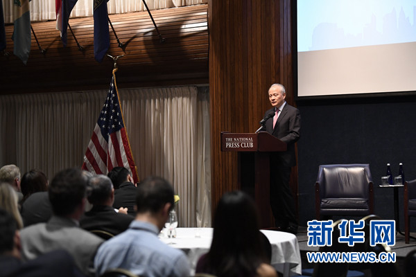 崔天凱當(dāng)天在美全國記者協(xié)會舉行的紀錄片《善良的天使》觀影活動上致辭說,許多人對近期中美關(guān)系形勢深感憂慮,在這充滿挑戰(zhàn)的時刻,中美關(guān)系發(fā)展更需要“善良的天使”。